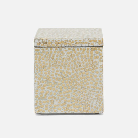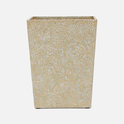 An elegant mosaic of lacquered, cracked eggshell, this bathroom accessory collection now includes a large, rectangular tissue box. This is absolutely one of our most unique and beautiful finishes! It’s sure to impress! Wastebaskets include gray powder coated metal liner.