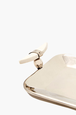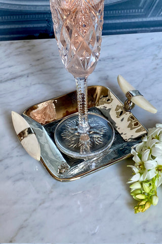 Handmade Nickel Silver Tray with Natural White Bone Handles. Serve your guests with unique style. This is a natural product, variation is to be expected.