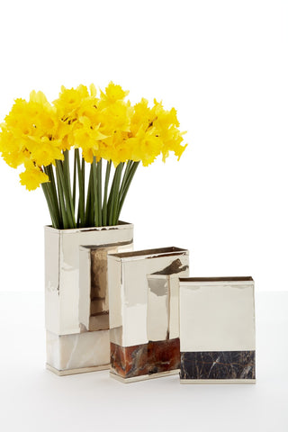 Salma Nickel Silver and Onyx Tall Rectangular Flower Vase MULTIPLE COLORS AVAIL.