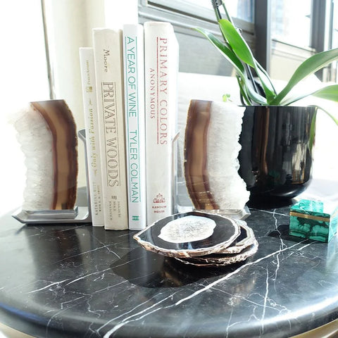 Natural Druze Crystal and Nickel Bookends