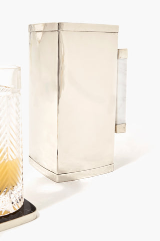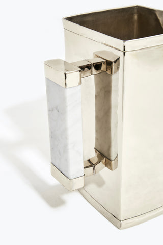 Handmade Nickel Silver Ice Bucket with Natural Carrara Marble Handles. Serve your guests with unique style. This is a natural product, variation is to be expected. ITEMS SOLD INDIVIDUALLY